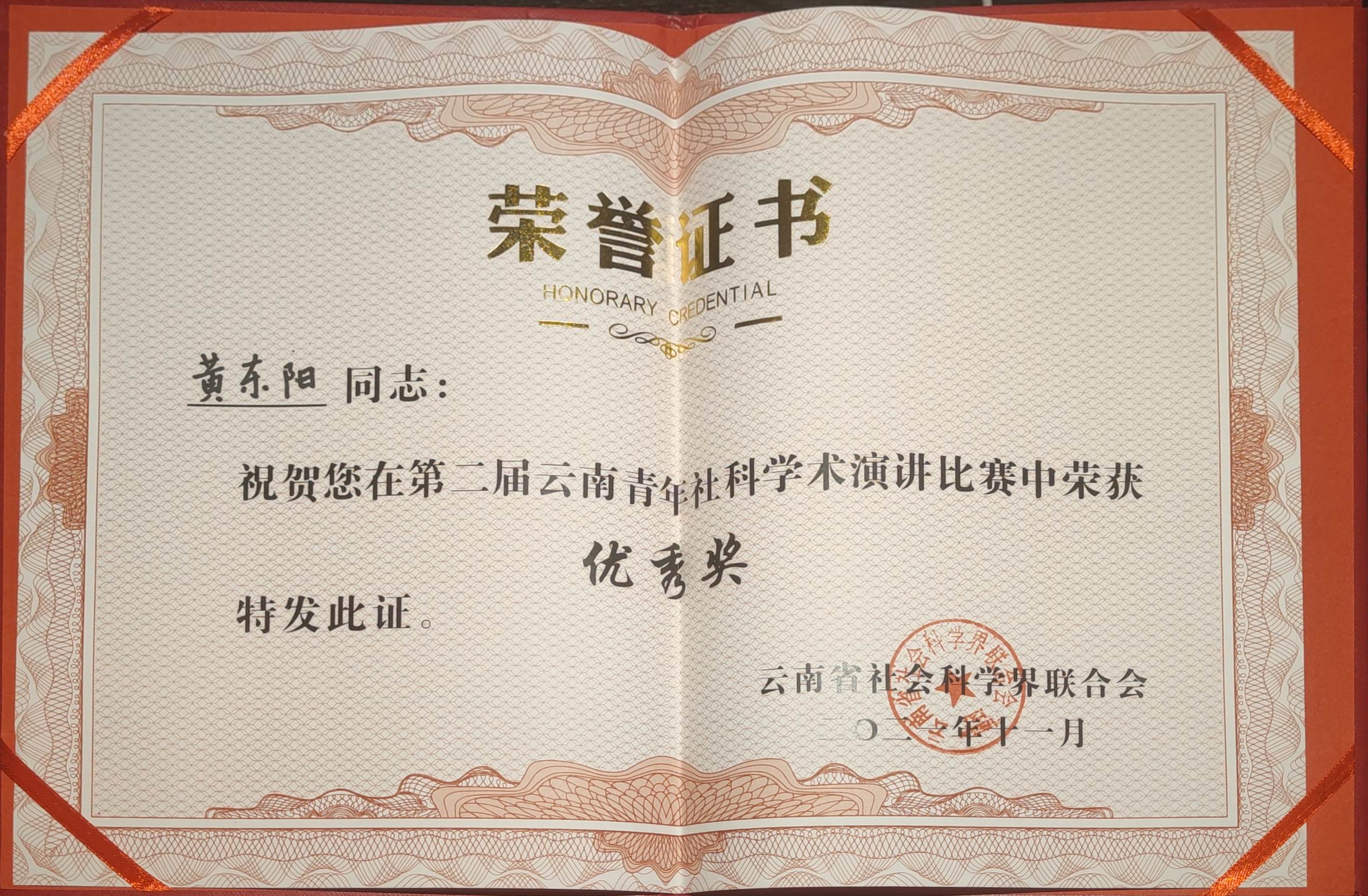 教师教育学院黄东阳教师荣获云南青年社科学术演讲比赛“优秀奖”
