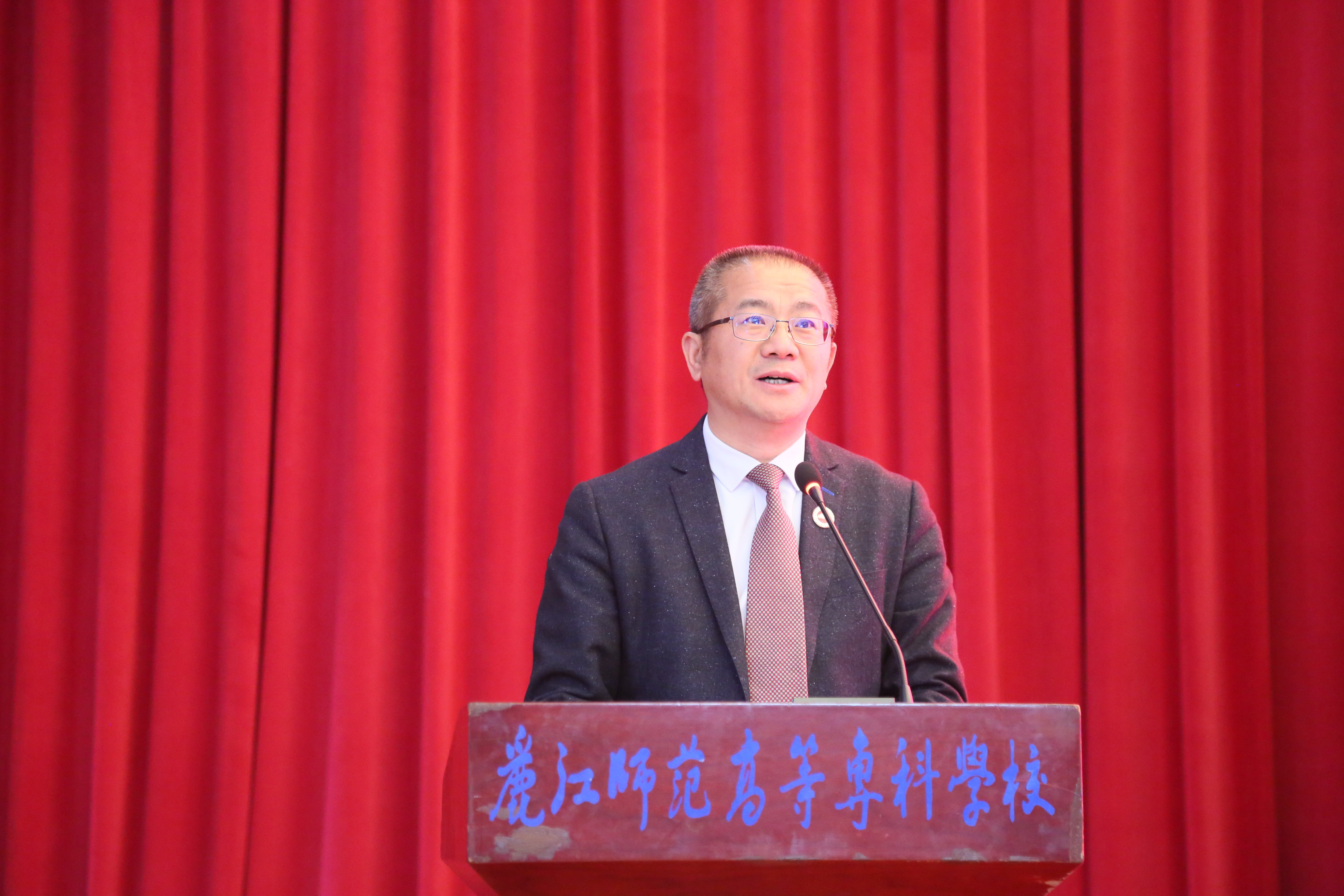 2021年11月25日上午, 由丽江师范高等专科学校承办,华东师范大学、南京晓庄学院、长沙师范学院、云南师范大学四所高校联合支持的首届丽师学术交流周在学校图书馆正式拉开序幕。华东师范大学党委常委、副校长雷启立,国际汉语文化学院党委书记、国际教育中心主任黄美旭,学校办公室副主任、合作交流办主任夏冰,党委宣传部副部长、新闻办公室副主任陈颖,学工部副部长、寻甸县委常委、副县长李彦垒(挂职),传播学院副教授、寻甸县金所街道泽铁社区驻村第一书记李浩(挂职),学校办公室干部冯舸、黄欣,党委宣传部干部符哲琦,长沙师院挂职干部张建国,我校党委书记张祖武,副校长朱桂香,纪委书记李淑良,学校各学院院长及分管科研副院长,科技处、教务处、民研中心、对外合作交流处等部门人员和部分师生代表300余人参加了本次活动。活动由朱桂香副校长主持。