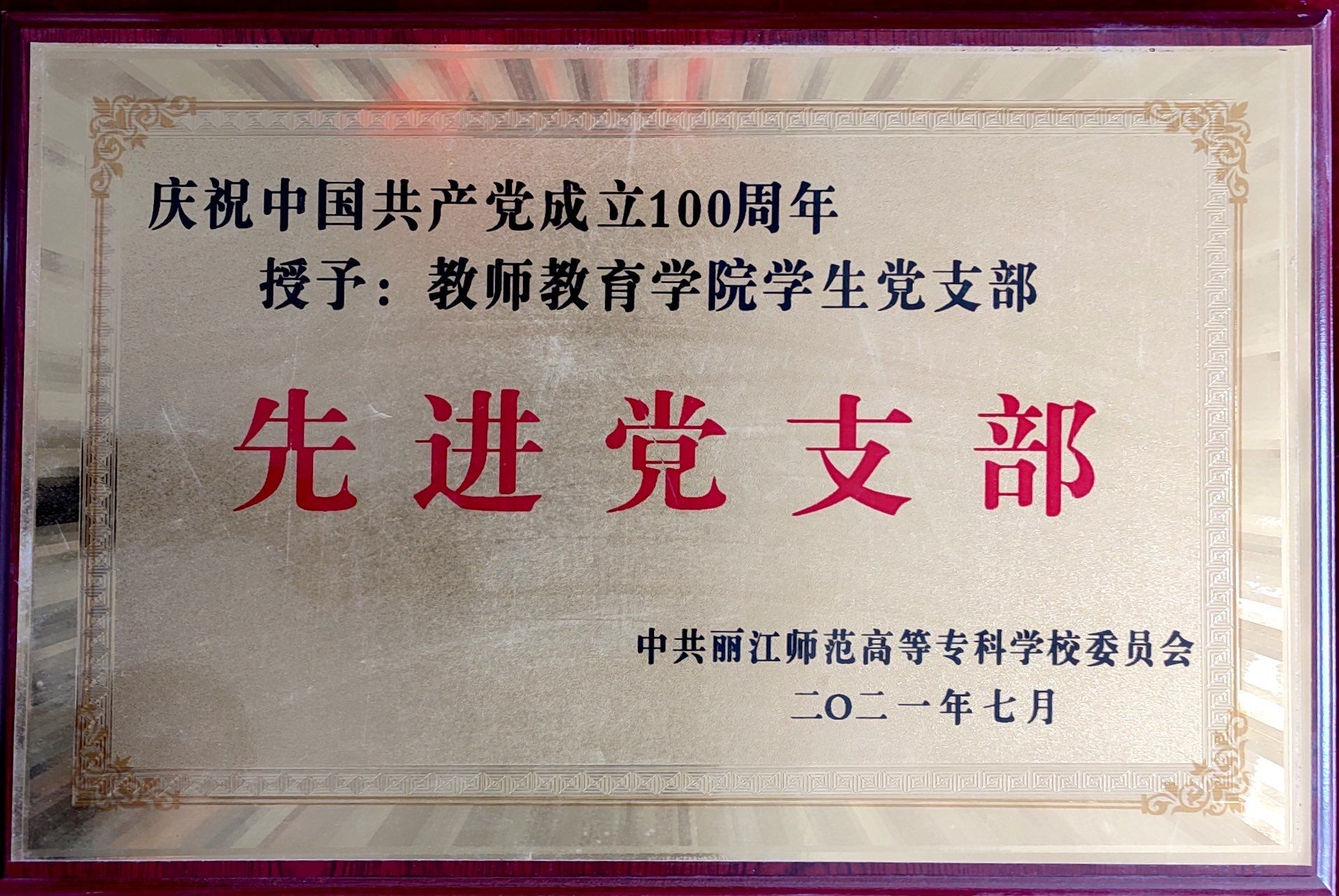 2021年7月,教师教育学院学生党支部荣获庆祝中国共产党成立100周年“先进党支部”荣誉称号。