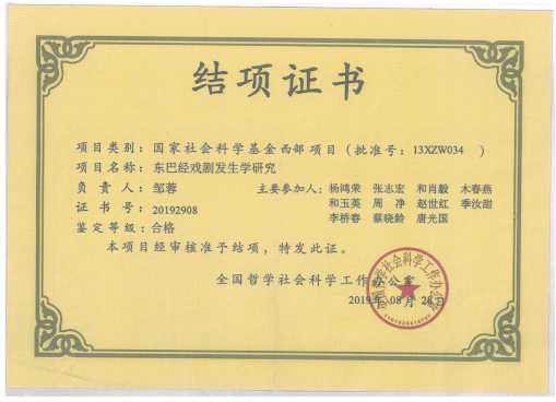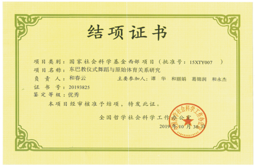 《东巴教仪式舞蹈与原始体育关系研究》结项优秀证书