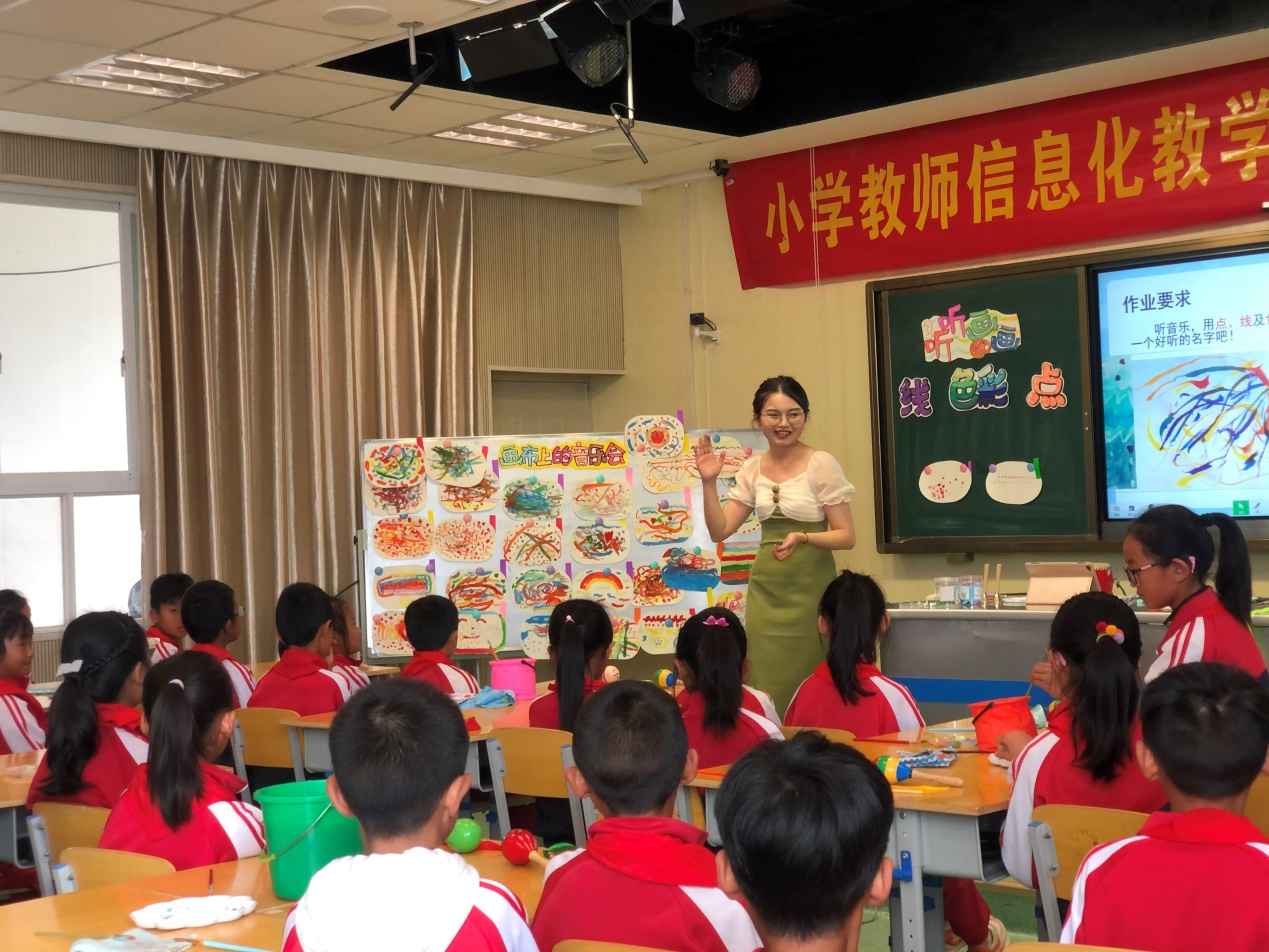 更让观众叹为观止的是长沙师范附属创远小学何苗老师执教的三年级美术《听听画画》。何老师借助信息技术手段巧妙地将音乐和美术结合,展现了音乐的节奏、旋律和美术的线条、色彩和点的关系,最后让孩子听音乐,将自己的感受用点、线条和色彩画出来,开了一场“画布上的音乐会”,令所有观众耳目一新,行走了一场真正的艺术之旅。