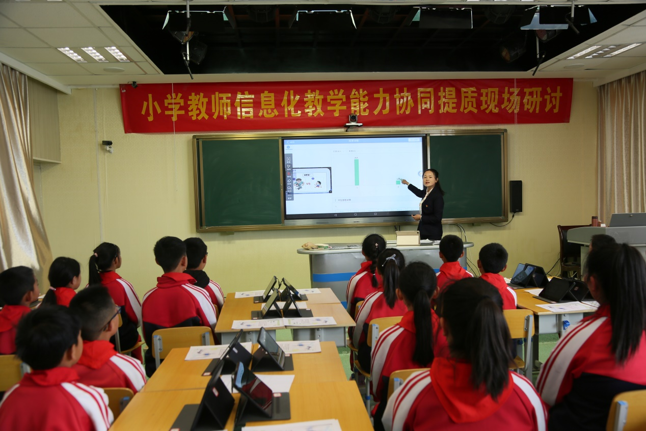 上午,四位年轻教师展示了信息化教学的示范课。首先是长沙师范学院附属小学马笛老师执教一年级的数学《100以内数的比较大小》,马老师开始便用平板发送了情境练习,接下来的探究新知、游戏巩固、现场考核等环节均采用了不同形式、不同介质的信息化手段,全体孩子积极参与其中,练习中高效的统计出孩子们的答题情况,准确定位哪个孩子出错以及出错的情况,更有针对性的进行及时纠正,让观摩者们深深体会到信息化的迅速高效。