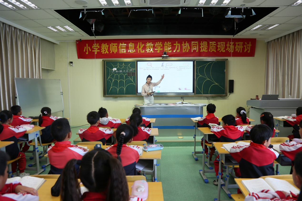 接下来长沙师范附属天健小学彭娜老师执教了二年级的语文《蜘蛛开店》,彭老师声情并茂,情感饱满,极具代入感,她将故事情节、画面融入屏幕中,指尖轻点调出生字书写的动态画面,令在座老师惊叹信息技术的神奇。