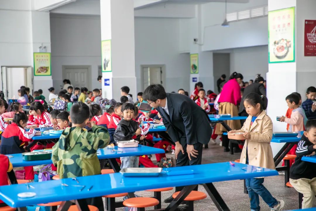 虞锋和搭班的老师一起,让孩子们排好队、带好碗,将他们领到了食堂。