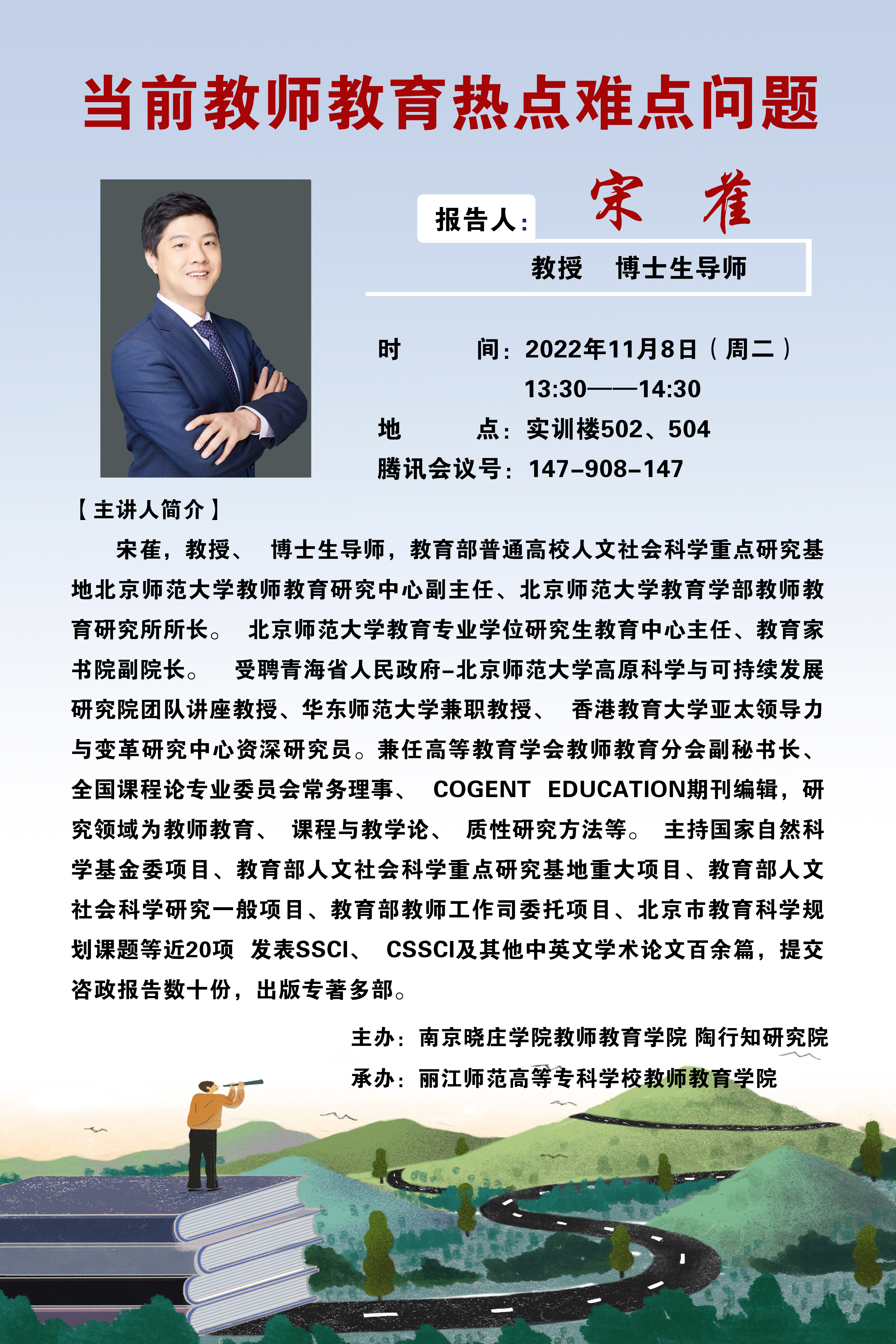 2022年11月8日,在我院名誉院长冯军教授的推动之下,教师教育学院又迎来了一场与南京晓庄学院共享的线上讲座。