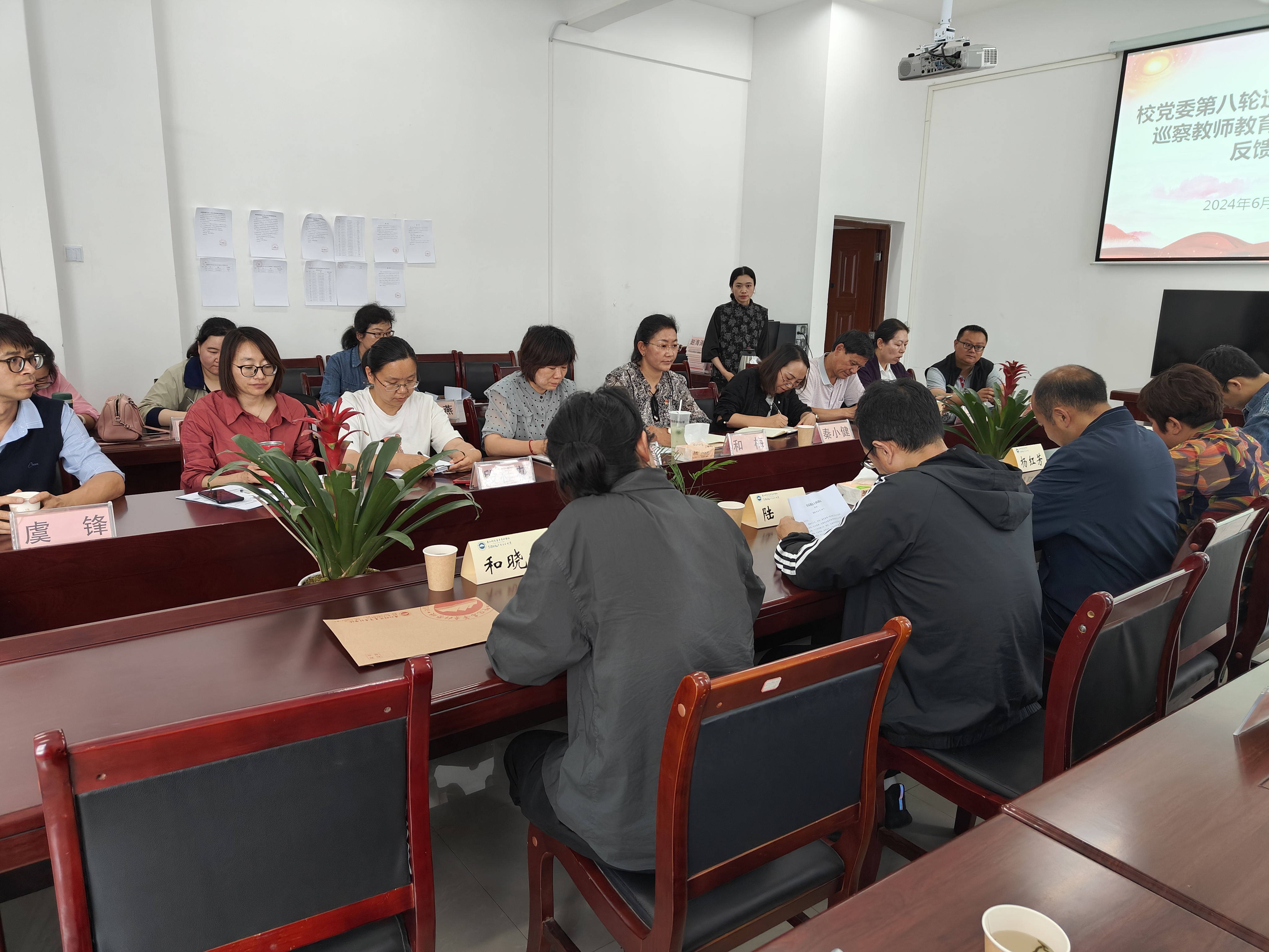 根据校党委巡察工作的安排,2024年6月18日,校党委第八轮巡察第二巡察组向教师教育学院党总支反馈巡察情况。校党委巡察工作领导小组成员传达了学校党委书记毕天云同志在校党委会议上听取校党委第八轮巡察情况汇报时的讲话精神,对抓好巡察整改工作提出要求。党委第八轮巡察第二巡察组组长沈欢分别向教师教育学院党总支主要负责人和领导班子反馈了巡察情况,宋春丽同志主持反馈会议,和梅同志作表态发言。会议在求是楼423会议室召开。