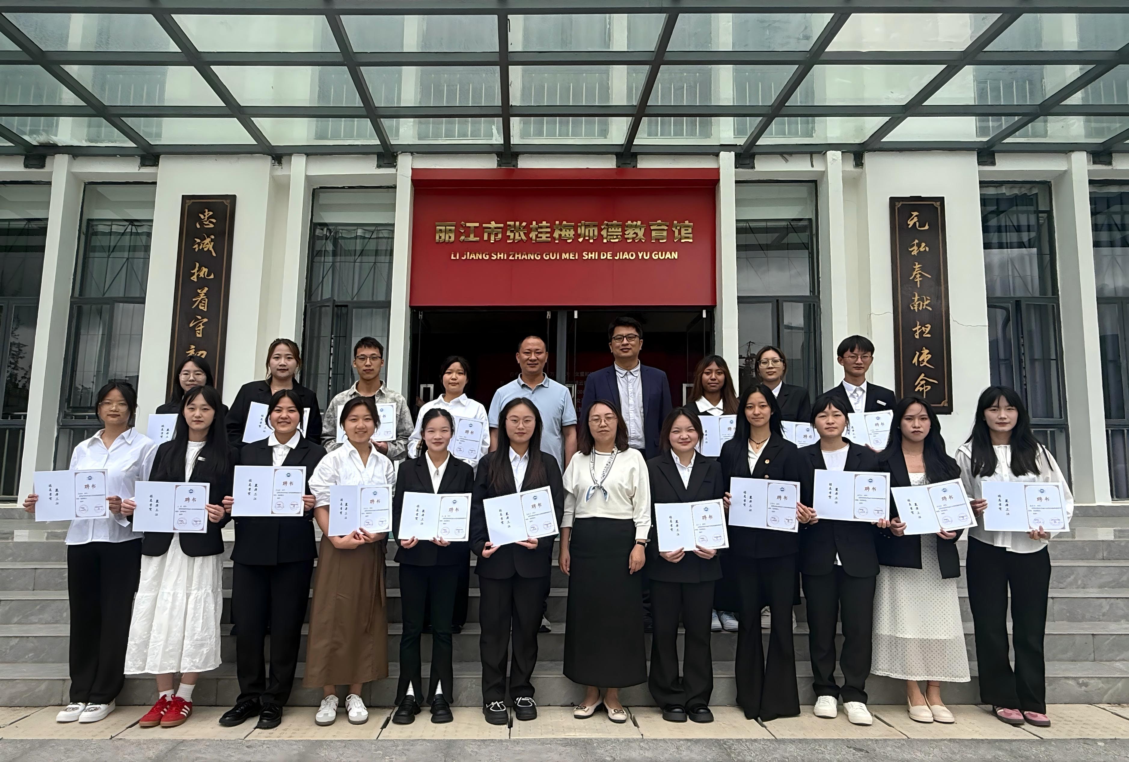 经过综合评审,李朝芳等18位优秀学生脱颖而出,被正式聘任为第二届丽江市张桂梅师德教育馆学生讲解员。在活动仪式上,教师教育学院院长杨丽星、机关党总支书记徐安绕、教师教育学院副院长秦小健共同为这18位新聘讲解员颁发了聘书。这不仅是一份荣誉,更是一份沉甸甸的责任,标志着新一届讲解员队伍正式肩负起传承张桂梅精神的光荣使命。