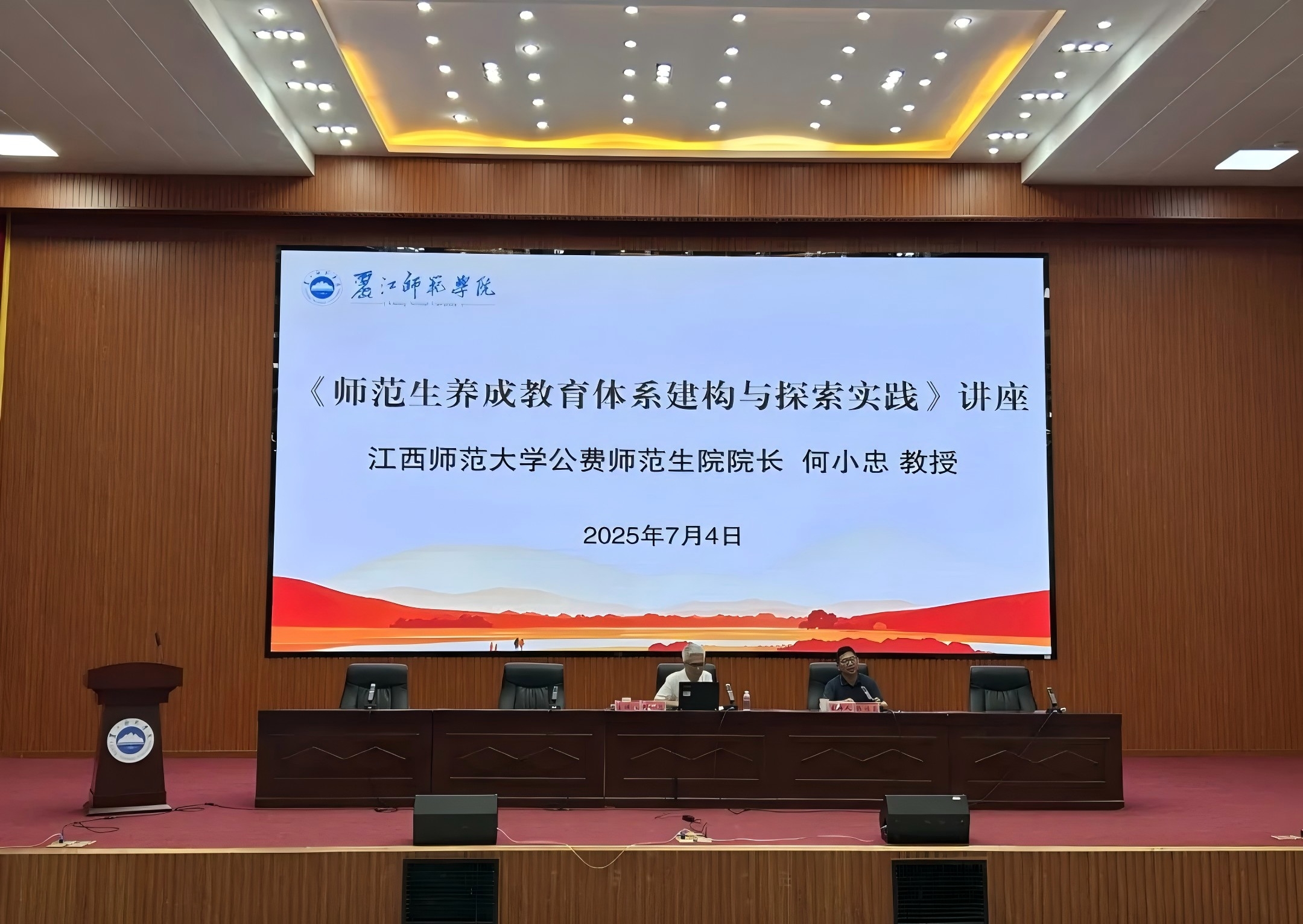 7月4日,学校邀请江西师范大学公费师范生院院长何小忠教授开展题为“师范生养成教育体系建构与探索实践”的专题讲座。讲座由学校党委副书记彭鸿昌主持,200余名教师参与聆听。