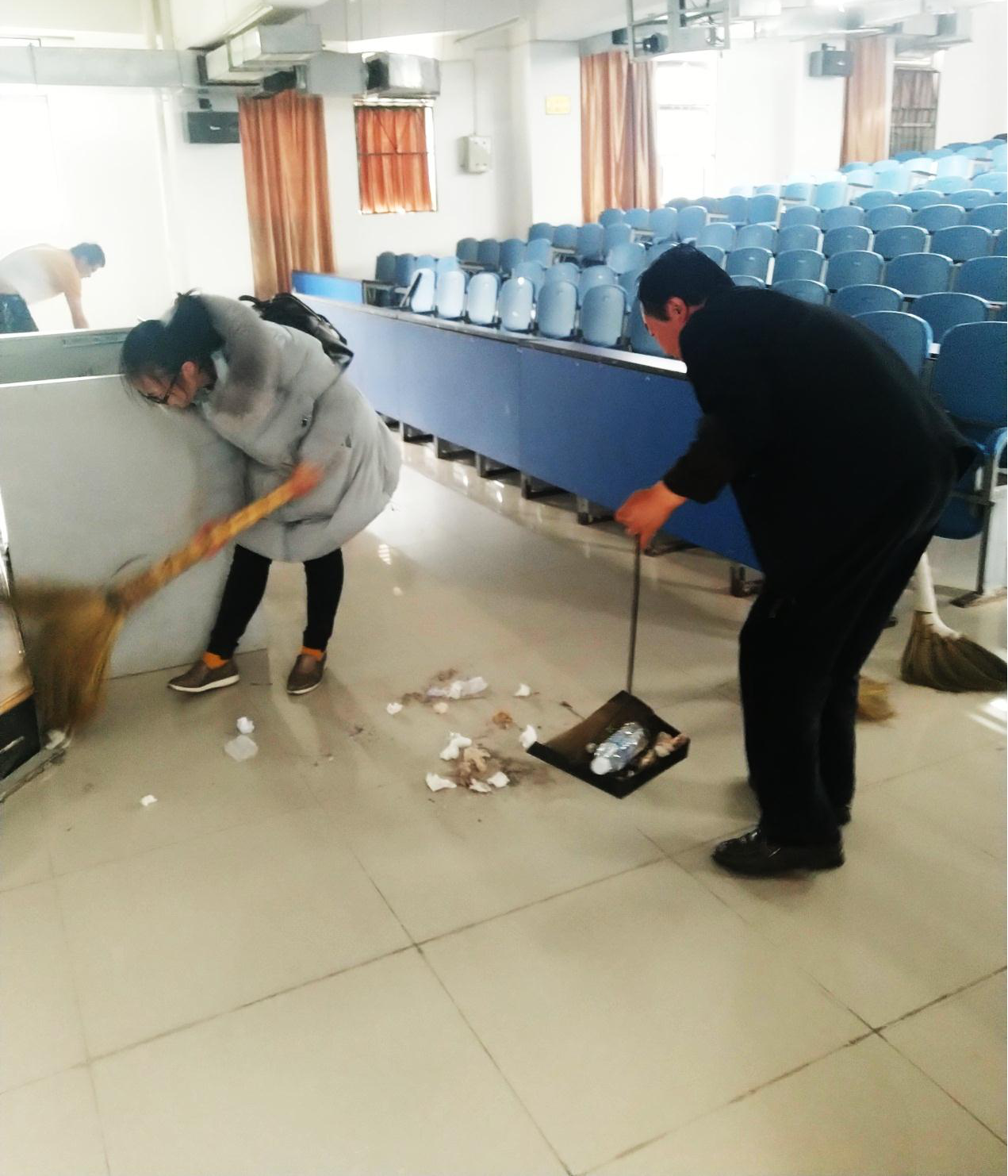 教师党员先锋队员们为迎接2020年第一批2018级学生返校上课,配合学校疫情防控工作,给学生一个干净、卫生的学习环境,学院总支党员先锋队认真完成了18间教室(其中包括2间阶梯教室、2间大教室和14间小教室)卫生打扫。参加打扫卫生的队员分四个小组,每组负责3-5间教室卫生打扫。