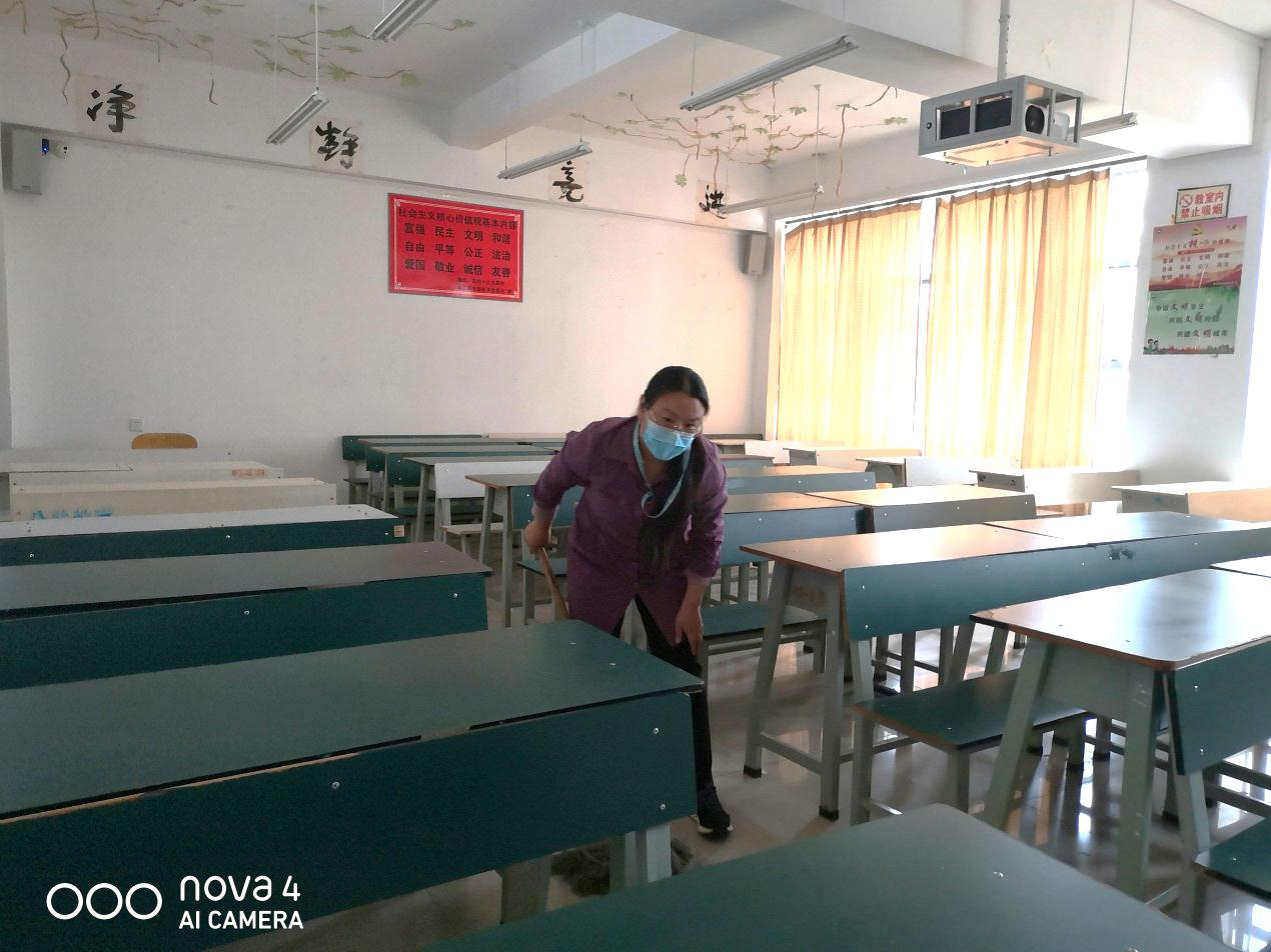 党员先锋队员们有的扫地、有的抹桌子、抹讲台、抹黑板、有的拖地板,大家齐心合力把教室扫得干干净净,扫完教室后老师们都出了一身汗。用干净整洁的教室来迎接学校第一批返校学生,用自己的行动投身到防疫爱国卫生运动中,心里感到很满足。