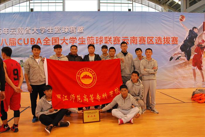 由云南省教育厅主办,云南省学生体育协会协办的云南省大学生篮球联赛暨第十八届CUBA全国大学生篮球联赛云南赛区选拔赛,于2015年12月21日至27日在大理大学隆重举行。我校十分重视此次赛事,组成了由张洪波校长任领队,和春云教授和冯永福老师任教练,由张雪超等10名同学组成队员的男子篮球队。由于是第一次参加此项云南最高水平的大学生篮球赛事,我校男篮的身高体重、比赛经验等方面与长期组队训练比赛的兄弟院校男篮存在着明显的差距。面对困难,我校男篮沉着应战、顽强拼搏,以初生牛犊不怕虎的勇气,经过七天紧张激烈的角逐,从高手如林的赛场中脱颖而出,惜败于昆明工业职业技术学院荣获男子丙组亚军,创造了丽江学生篮球比赛的历史最好成绩。