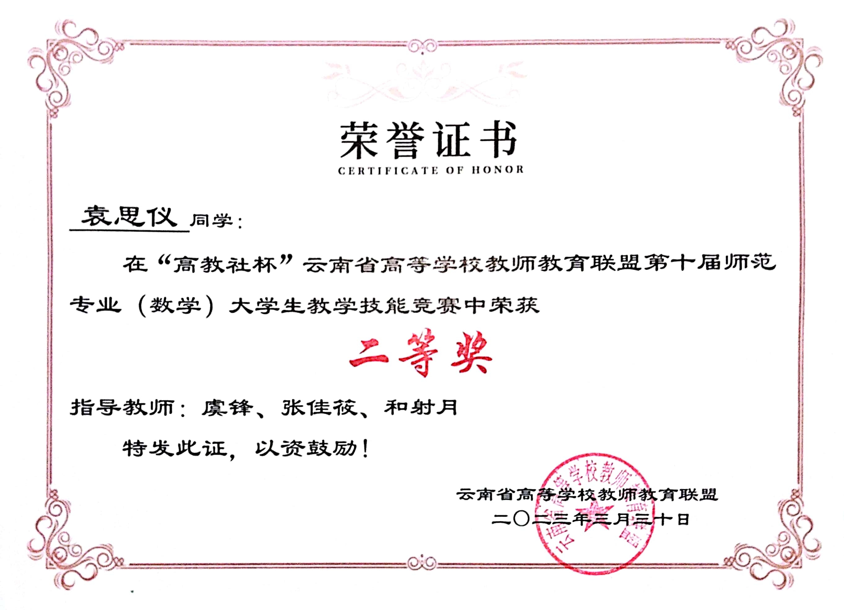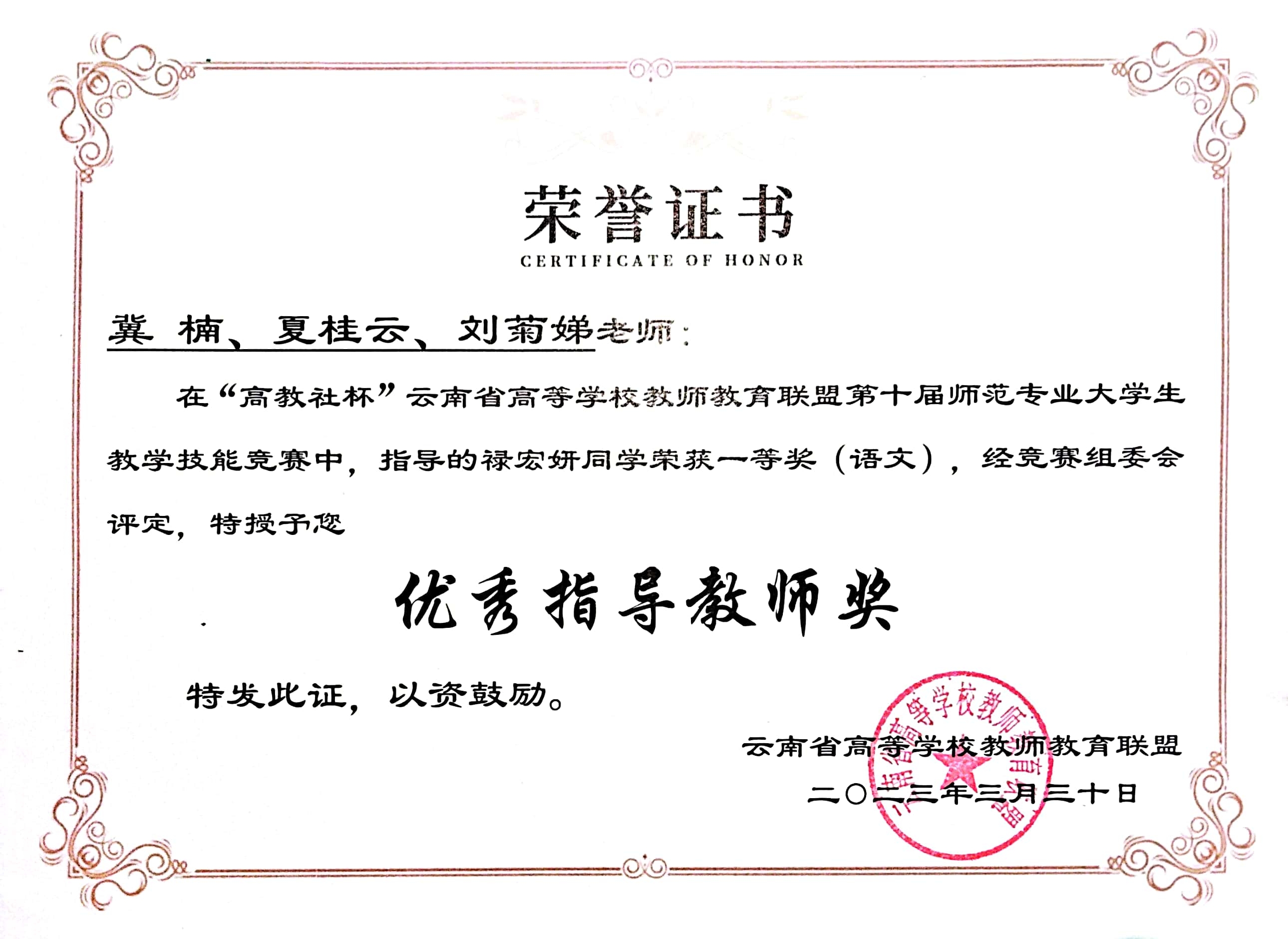 我院派出学生参加第九届、第十届“高教社杯”云南省高等学校教师教育联盟师范专业大学生教学技能大赛连续两届获得一等奖的好成绩。