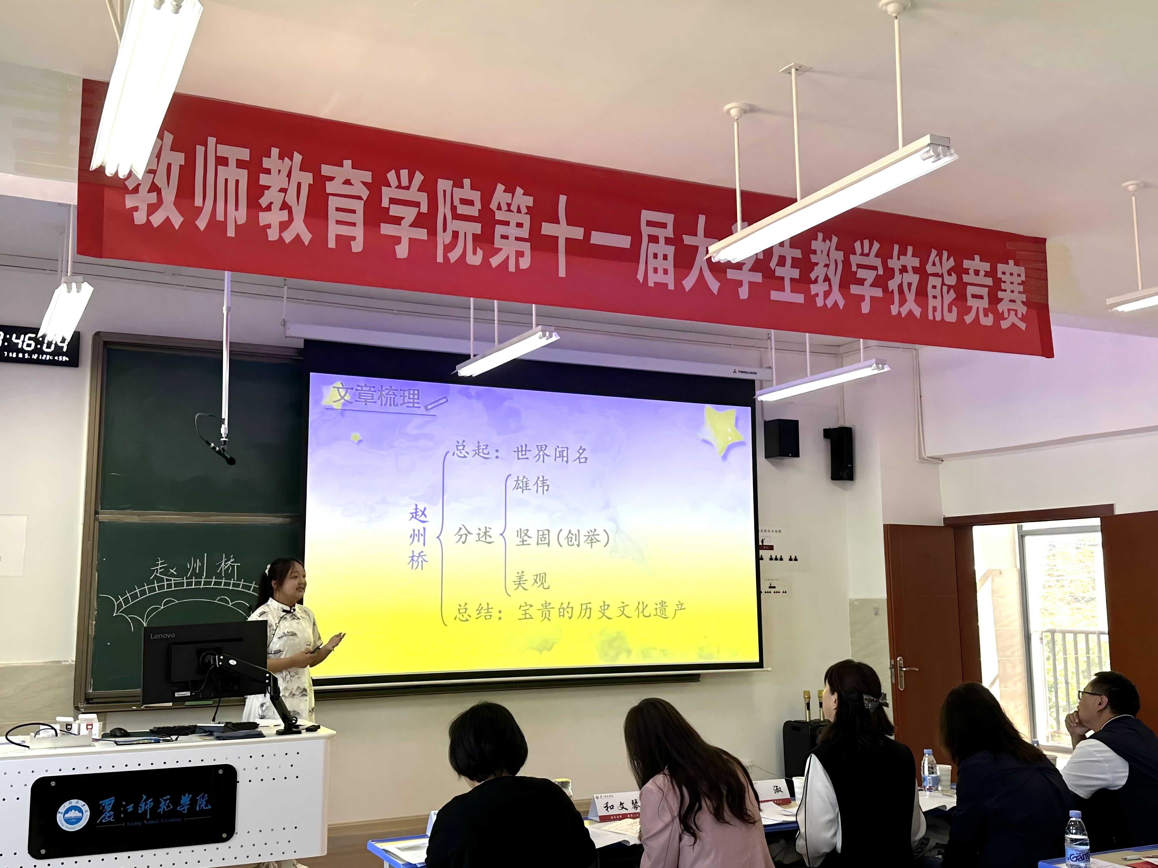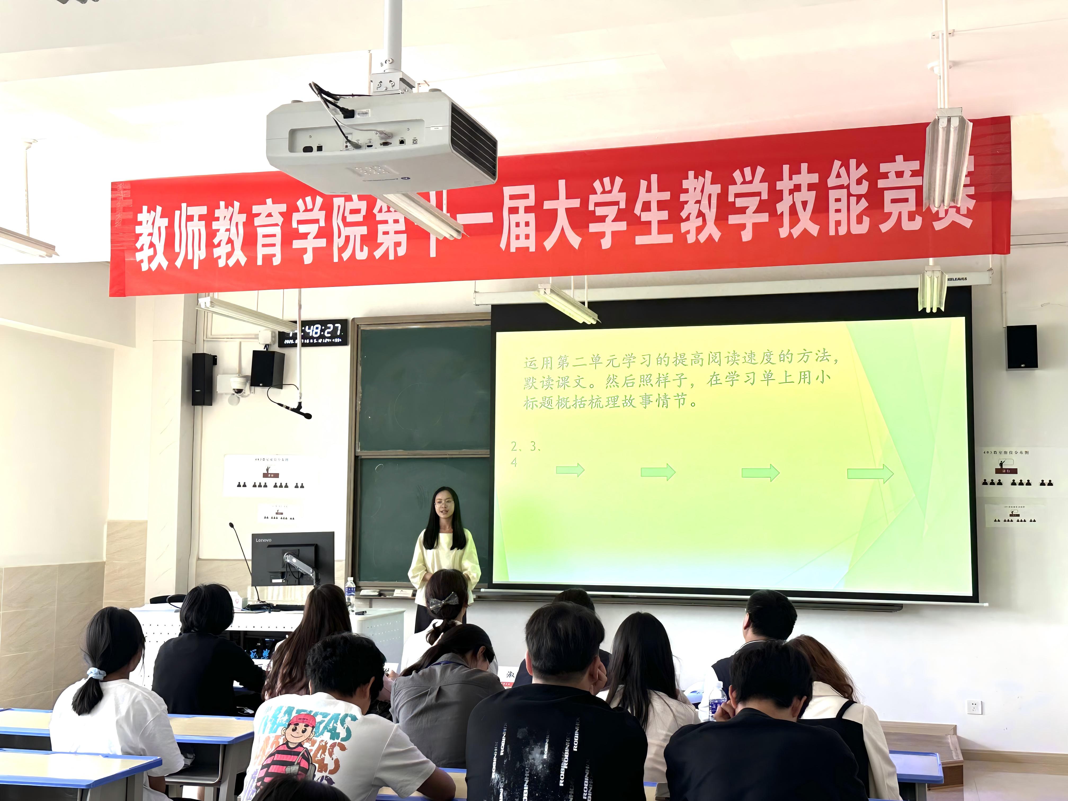 2025年6月7日,教师教育学院成功举办第十一届大学生教学技能竞赛。经过初赛选拔,专科组陈娟等 9 人、本科组白颖瑶等 9 人进入决赛。