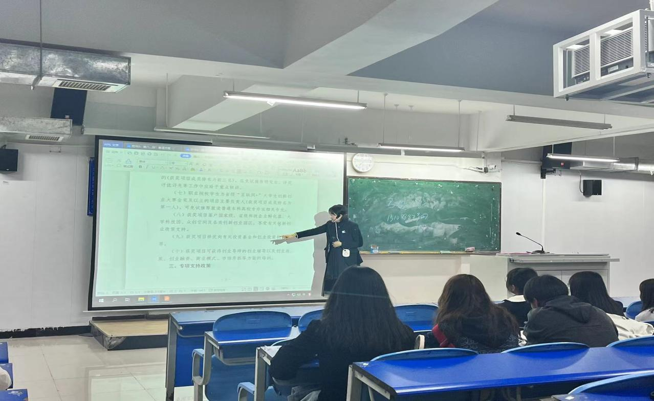 首先,马晓垠老师从“互联网+”创新创业大赛开始讲解,给同学们介绍了云南省“互联网+”创新创业大赛职教赛道和“青年红色筑梦之旅”项目具体方案,为同学们分析了符合专业发展的比赛项目及具体报名流程。